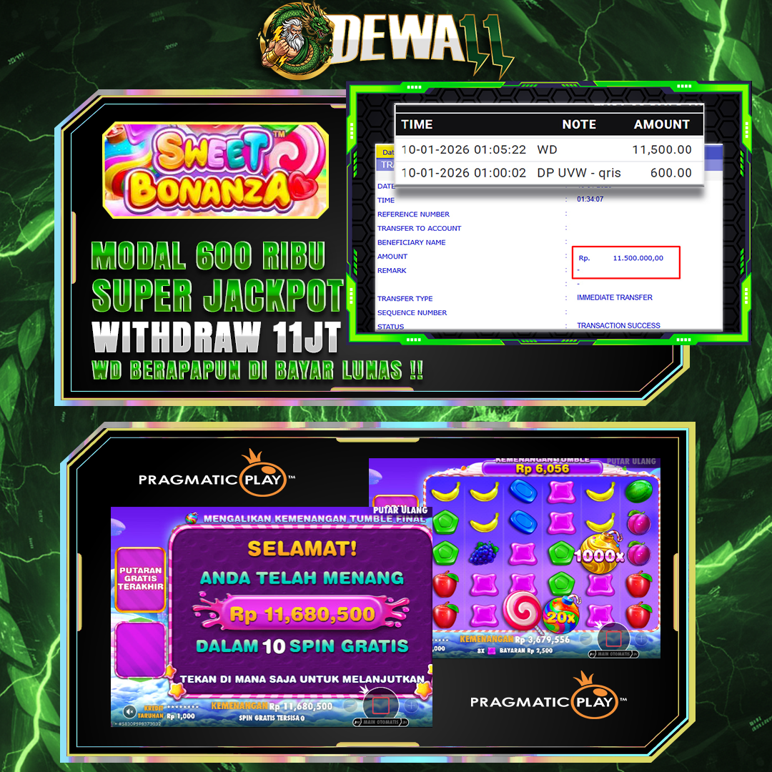 DEWA11 menghadirkan game jackpot vip yang di lengkapi fitur khusus new member hanya dengan modal deposit 600k dijamin akan withdraw 11,5 juta malam ini.